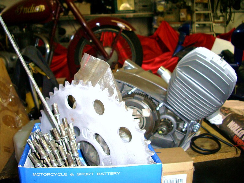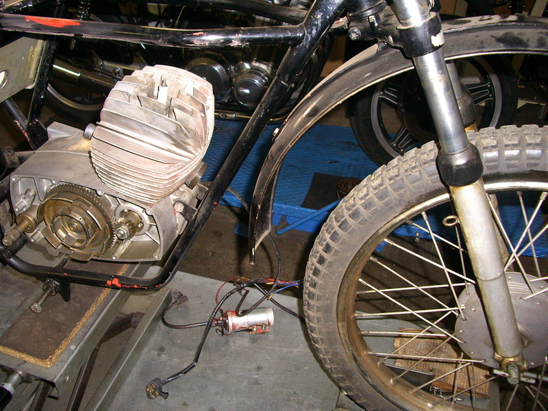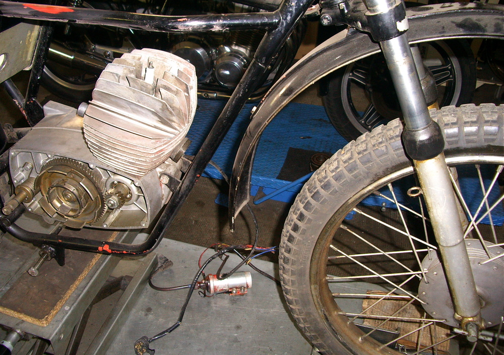 Il motore, che tutto sommato non versava in condizioni pietose, aveva il cilindro rovinato a causa dello sfilaggio di un fermo dello spinotto. È stato recuperato un pistone nuovo, originale, e dopo un lungo lavoro è stato ripristinata la giusta forma delle luci, affidando poi il lavoro ad uno ad uno specialista che ha rimosso la cromatura e ricromato il tutto con il giusto spessore. Per completare il lavoro al motore, infine, sono stati cambiati cuscinetti e paraoli. I carter esterni sono stati lucidati, mentre il resto è stato sabbiato, come in origine.
