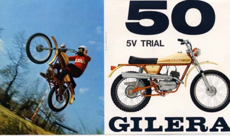 "Falli impazzire col tuo nuovo Gilera!". Tutto ebbe inizio da questa campagna pubblicitaria che convinse più di 20.000 ragazzini italiani ad acquistare la Gilera 50 5V Trial. Facciamo però un piccolo passo indietro nella storia. Era la fine del 1969 quando, dopo anni di bilanci disastrosi, Giuseppe Gilera decise di cedere il marchio di Arcore alla Piaggio, unica società in grado di salvarlo. L'arrivo della Casa di Pontedera rivoluzionò completamente le strategie commerciali e l'offerta dei modelli a marchio Gilera. La creazione di "cinquantini" che strizzavano l'occhio ai più giovani venne accompagnata da una una massiccia campagna pubblicitaria, inedita per la stessa Gilera, permettendo così di imporsi sul mercato.