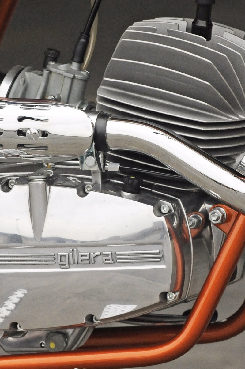 Un particolarità di questa moto? Il comando del cambio, posto a sinistra, ha la prima verso l'alto, come il Gilera Giubileo che, però, lo montava dal lato opposto.