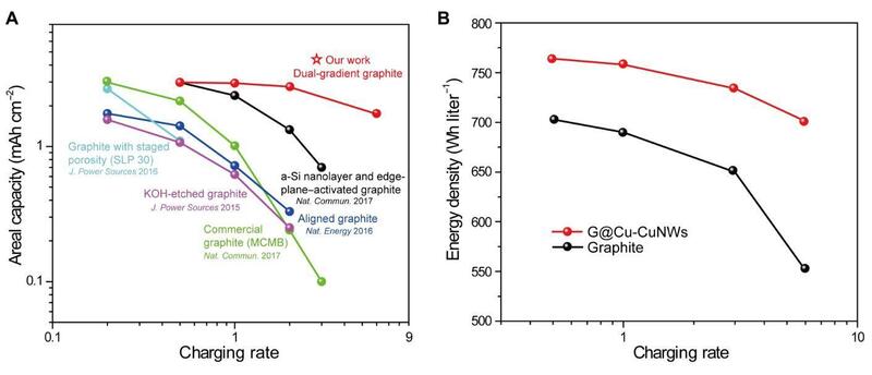 I ricercatori hanno cercato di migliorare la sua costruzione ricorrendo a una architettura porosa a doppio gradiente con particelle di grafite, nanofili di rame e un rivestimento di rame ricavato attraverso un nuovo processo di composizione.