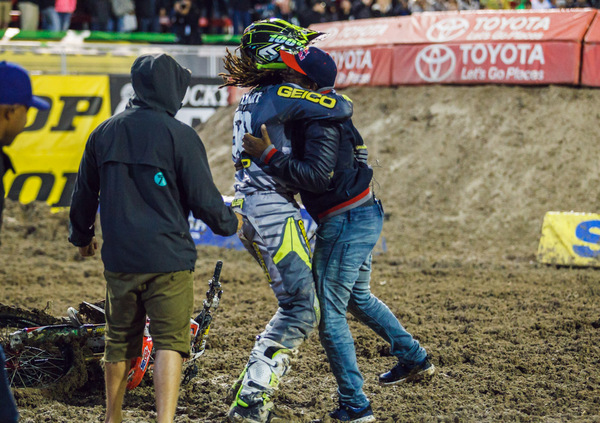 Meno difficile la giornata di Malcolm Stewart nella Costa Est, dove il pilota Honda GEICO è arrivato terzo in solitaria e ben davanti a tutti i suoi diretti concorrenti, aggiudicandosi il su primo titolo in carriera. All’arrivo c’era il fratello James ad aspettarlo per festeggiare: questi due sono i primi fratelli ad aggiudicarsi entrambi un titolo Supercross 250 (sebbene James lo abbia fatto in sella ad una 125 a due tempi). In settimana Malcolm ha poi fatto sapere che non correrà il National, per potersi concentrare sulla preparazione in sella alla 450, moto che utilizzerà a tempo pieno a partire dal 2017. Sempre secondo i pettegolezzi del paddock, sembra che Malcolm e James saranno entrambi in sella alle moto semiufficiali del Team Honda GEICO, sulla falsariga di quanto fatto dal Eli Tomac fino all’anno scorso, e da Justin Bogle quest’anno.