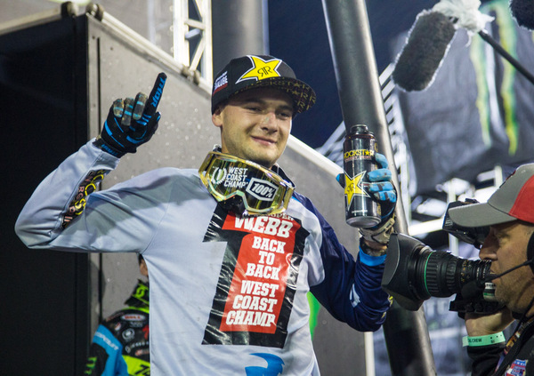 Nonostante tutto i due leader provvisori si sono comunque aggiudicati il titolo, anche se Cooper Webb nella Costa Ovest ha rischiato grosso. Il pilota Yamaha partiva infatti con un brutto infortunio al polso ottenuto in allenamento, e che ha tenuto nascosto il più a lungo possibile. Al punto di dire ai giornalisti in conferenza stampa il giorno prima della gara che forse qualcuno si era confuso con un infortunio ad un suo compagno di squadra! Sta di fatto che Cooper ha corso con un vistoso tutore al polso, e ovviamente ha già comunicato che non disputerà le prime prove del National. In gara ha fatto il gambero, in condizioni quasi proibitive, ma è riuscito a mantenere uno striminzito punto di vantaggio sul dominatore di giornata, Savatgy, sufficiente per confermare la sua tabella numero uno.