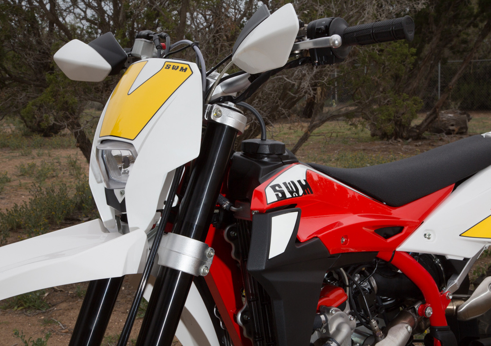 Dal punto di vista estetico queste SWM richiamano molto le vecchie Husqvarna “italiane”, da cui hanno preso molto se non proprio tutto. La loro vocazione non è però quella di racer pronto gara, quanto piuttosto di Dual Sport, un mercato che rimane in fortissima crescita negli Stati Uniti e nel quale Vertano ritiene di poter dire la sua con queste nuove arrivate. Indicativamente il prezzo di vendita tasse escluse dovrebbe aggirarsi sui $7300 per la RS300R e sui $7500 per la RS500R. Per entrambe ci sono iniezione elettronica Mikuni, avviamento elettrico con decompressore automatico, cruscotto sotto chiave, faro stradale e kit frecce/porta targa a norma DOT. Altre dotazioni di spicco sono il le sospensioni Kayaba, la ventola al radiatore, il doppio silenziatore di scarico e la frizione a comando idraulico Magura.