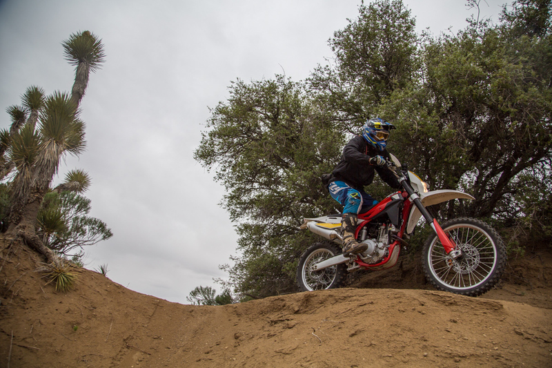Le moto, così come arrivano nella cassa, sono quasi completamente strozzate per passare i restrittivi test emissioni californiani, ma una veloce cura per eliminare le strozzature nella cassa filtro permette di avvicinarsi da subito alle prestazioni previste per la versione “racing”, che sarà messa a punto a breve. Come ulteriore riferimento per questo test ci siamo fatti accompagnare da Robert Nantista (esperto di Baja ed avido appassionato del marchio Husqvarna) che si è presentato con una 450 pronto gara, anche se non più freschissima.