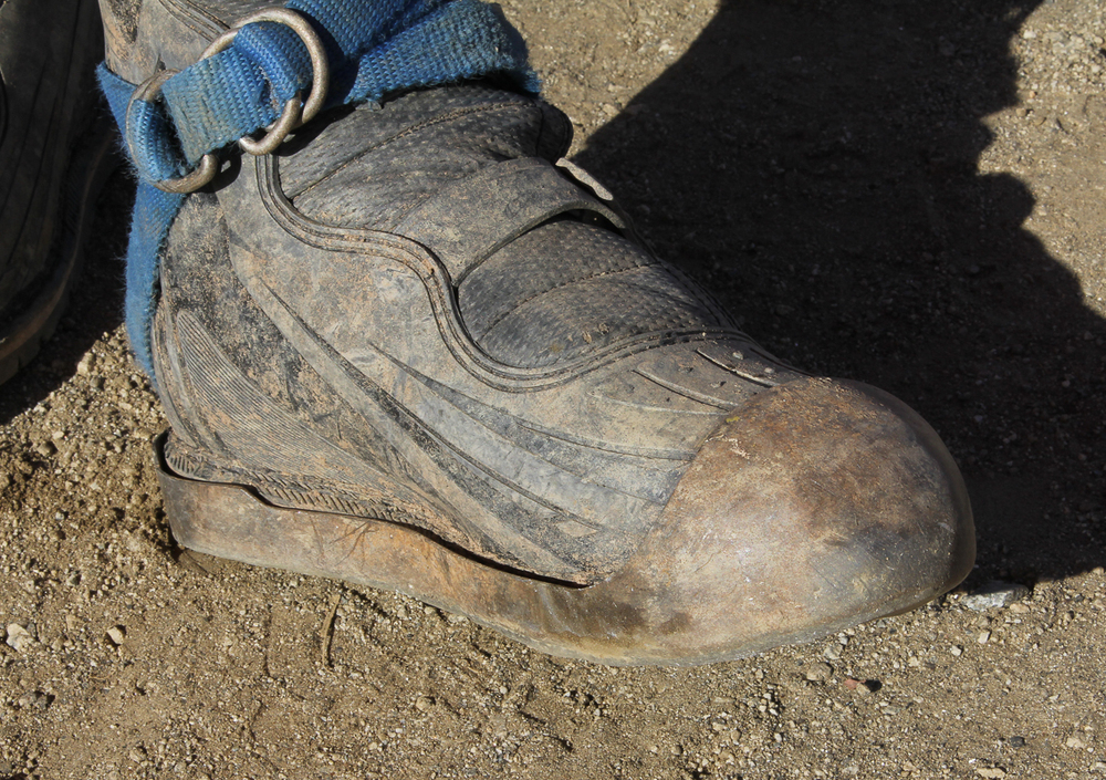 Abbigliamento ancora più semplice: senza volere a tutti i costi investire in una stilosa tuta in pelle (di quelle che i pantaloni vanno sopra lo stivale) qui basta un completo da cross, qualche protezione in più e la mitica scarpetta in acciaio da allacciare al piede sinistro, voilà!
