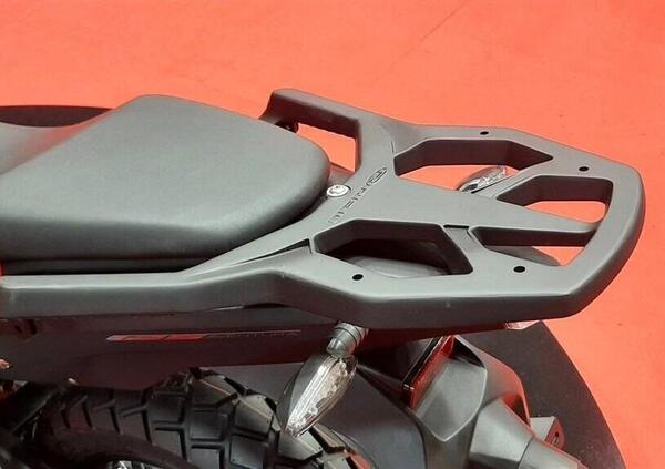 La sella a due piani e l'ampio portapacchi sono improntati alla praticità, così come le pedane rivestite di gomma. Della dotazione fanno parte gli indicatori di direzione a led, i paramani e il paracoppa.