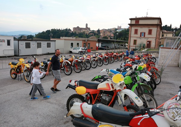 Per quanto riguarda il lato prettamente motociclistico, tutto è iniziato sabato pomeriggio con l’apertura del parco chiuso, seguito dalla sfilata dei piloti e dei mezzi su un palco. Palco dove sono saliti anche i campioni Bettoni e Mercatelli, che corsero a Camerino nel 1974 rispettivamente su Gilera e su SWM. Presente anche il campione camerinese Cesare Bernardi, vincitore domenica scorsa di una classe di campionato italiano gruppo 5 regolarità e vincitore alla Sei Giorni dell’Elba nel 1981.