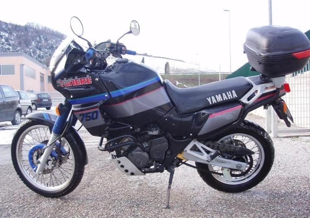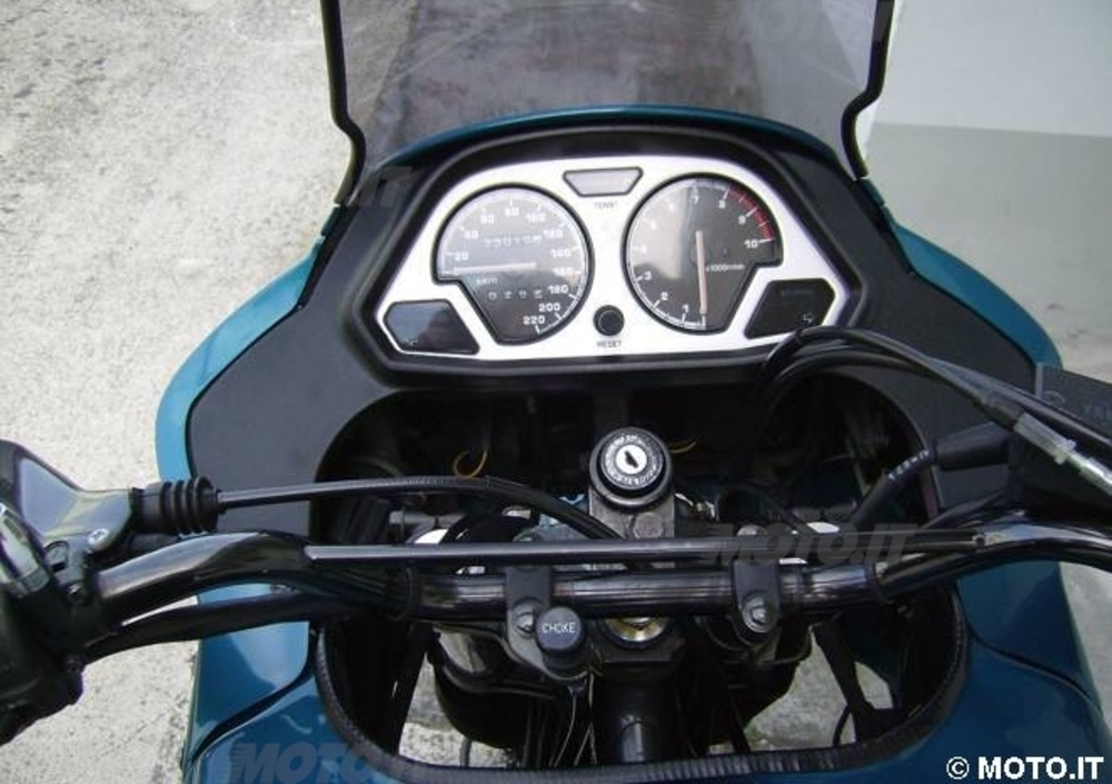 Ma com’era, la Yamaha XTZ 750 Superténéré? Che fosse una bicilindrica l’abbiamo già detto, ma va sottolineato che era l’unica con i cilindri appaiati fronte marcia e inclinati in avanti, mentre la BMW montava il classico boxer con trasmissione ad albero, le Honda (Transalp ed Africa Twin) erano delle “V2” a 52° e le Cagiva sfruttavano ovviamente il desmo Ducati con i cilindri ad L di 90°. Un motore sofisticato, il twin Yamaha raffreddato a liquido da 749 cc alimentati da due carburatori Mikuni da 38 mm, con tanto di distribuzione bialbero a 5 valvole per cilindro: soluzione tecnica tipica, quest’ultima, della casa di Iwata. Curiosa la scelta del cambio a cinque marce, mentre la trasmissione finale era a catena, anziché ad albero cardanico come sulla versione 2010. La potenza dichiarata era di 69 cv a 7.500 giri, con una coppia di 6,8 kgm a 6.750 giri. Quanto a prestazioni, i 200 orari erano a portata di mano.