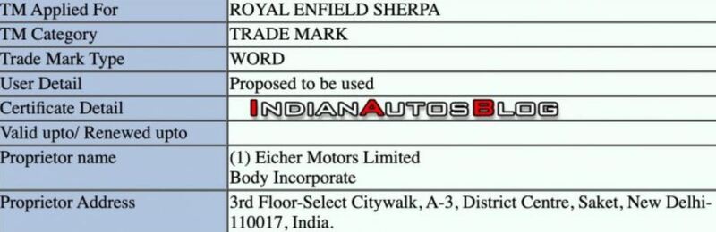 E’ così che in India la Casa di Chennai ha fatto richiesta di deposito dei nomi Hunter e Sherpa (quest’ultimo già utilizzato anche da Bultaco).