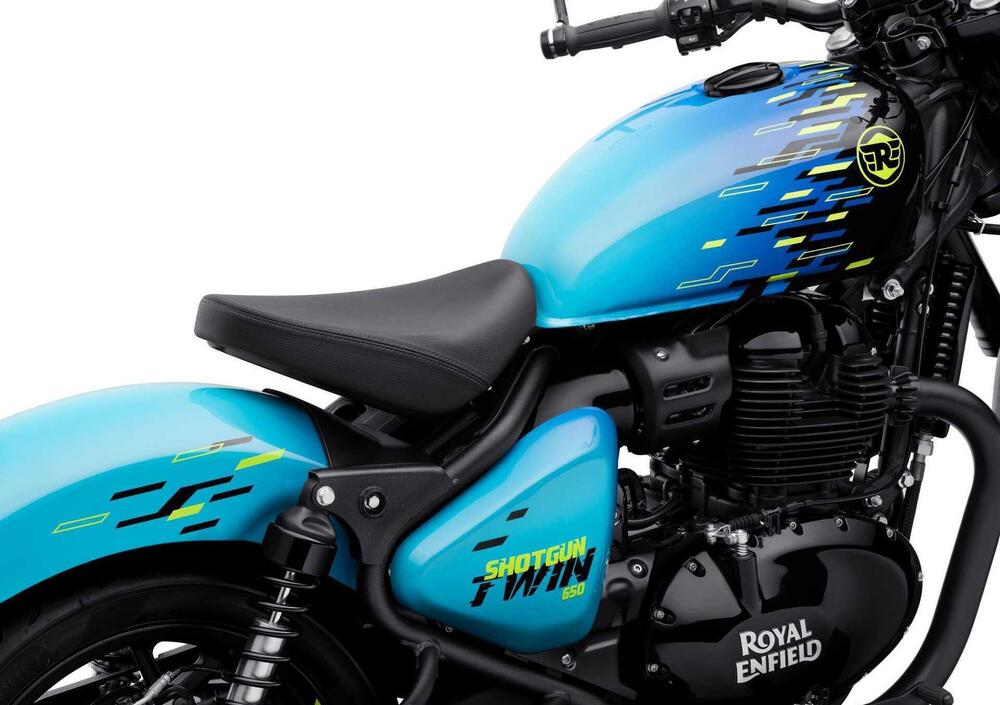 La Shotgun 650 è basata sulla nota piattaforma nascente attorno al propulsore bicilindrico di 650 cc da 47 cavalli delle Continental GT e Interceptor 650, otlre che della Super Meteor 650, ma declinata in una chiave roadster proiettata sul futuro della moto, proiezione sottolineata dalla livrea unica con motivi al neon. Non dichiarati, per adesso, i dati tecnici ma quello che possiamo evincere dalle foto è il telaio con pedane moderatamente avanzate, la ruota anteriore da 18 pollici con pneumatico da 100/90 e posteriore da 17 pollici gommata 150/70 (accoppiata unica nella gamma delle bicilindriche indiane), i coperchi dei carter in nero lucido, impianto frenante Bybre e leve della frizione e del freno anteriore dotate di registro per la regolazione della distanza. La sella del passeggero sembrerebbe rimovibile attraverso un meccanismo azionabile con la chiave d'avviamento e al suo posto è possibile montare una piastra per ospitare i bagagli, la forcella è Showa e la strumentazione è quella già vista sulla Scram 411 ed è arricchita dal navigatore turn-by-turn Tripper.