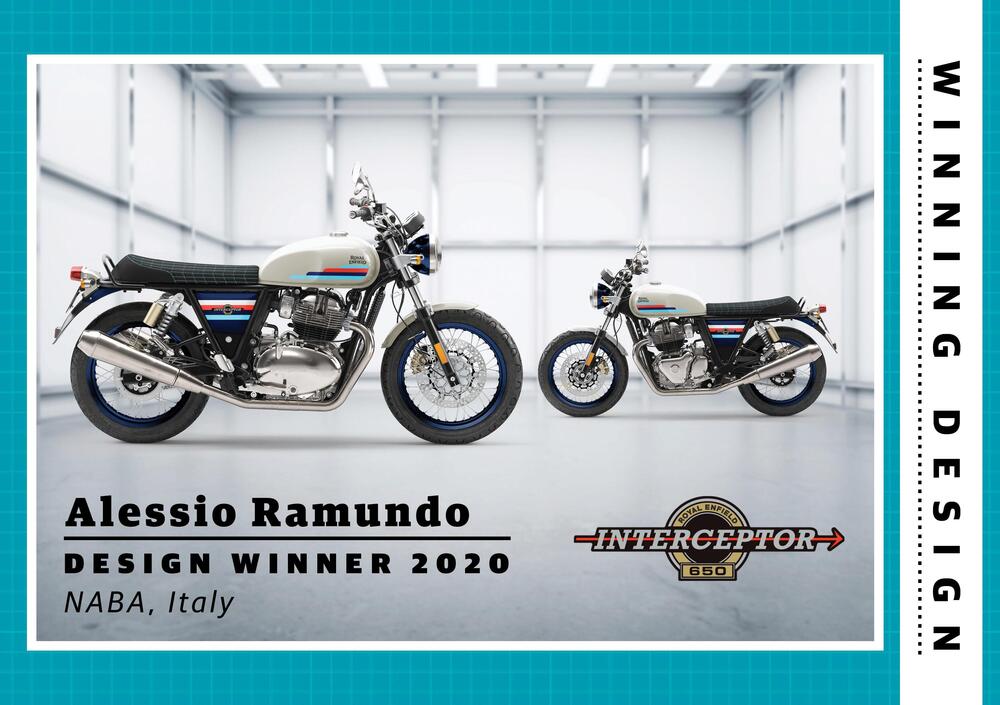 La rivisitazione dell’Interceptor 650 di Alessio Ramundo, ispirata alla storica Lancia Martini Racing, svetta su oltre 180 progetti arrivati da Regno Unito, Francia, Italia, Spagna e Germania