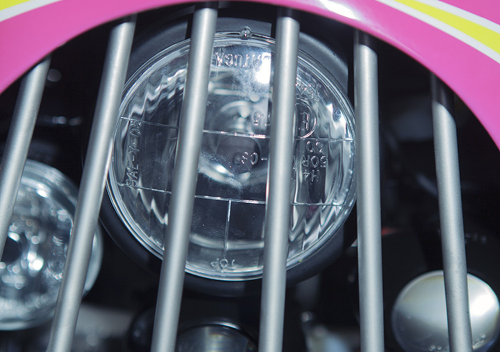 Infine, a definitivo completamento dell’opera, la decorazione di Tanaami su serbatoio e carenatura: disegni onirici, linee intricate, colori sempre accesissimi, che lui applica rigorosamente su materiali non convenzionali e oggetti che prevedono finiture “sartoriali” fatte a mano.