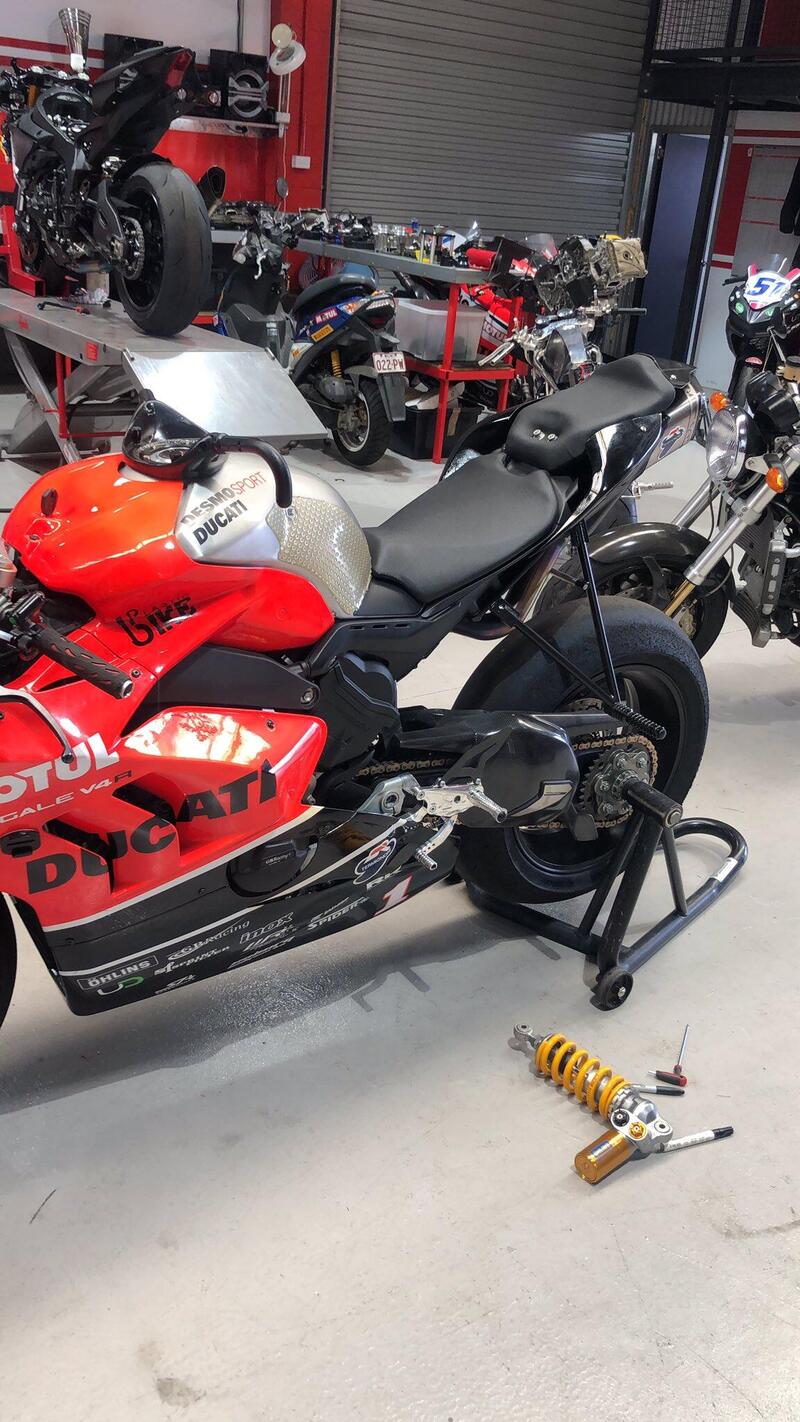 La moto, con un particolare allestimento biposto-demo da pista, viaggiava sul camion del team Desmo Sport Ducati che trasportava le moto da gara a Phillip Island. Sulla pista australiana questo fine settimana si aprirà infatti la stagione Superbike e suo figlio Oli correrà nella WorldSSP.