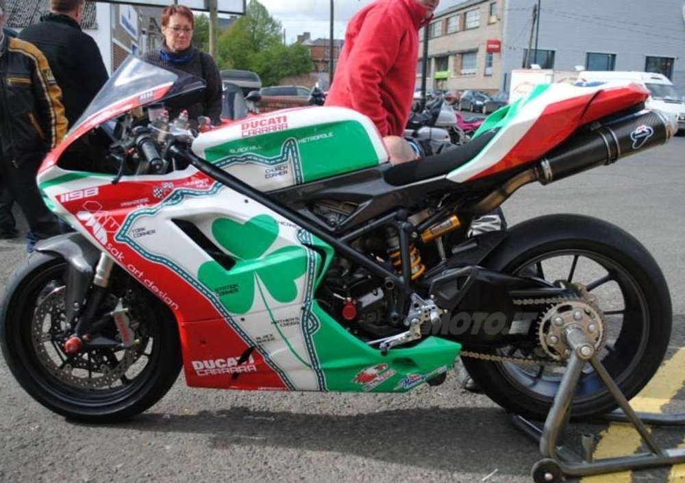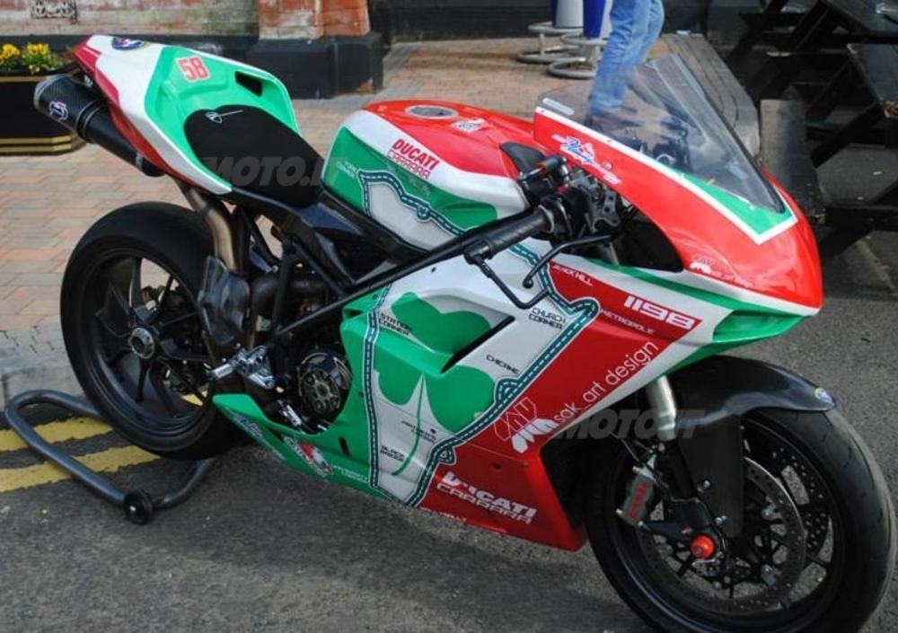 Tutta questa 1198 trasuda dello spirito della classica nordirlandese: i colori utilizzati sono quelli della bandiera irlandese (come noto gli stessi della nostra, a sottolineare il "ponte spirituale" costituito da questa Ducati) mentre in tutta la parte principale viene riprodotto l'andamento del velocissimo tracciato stradale dell'Ulster.