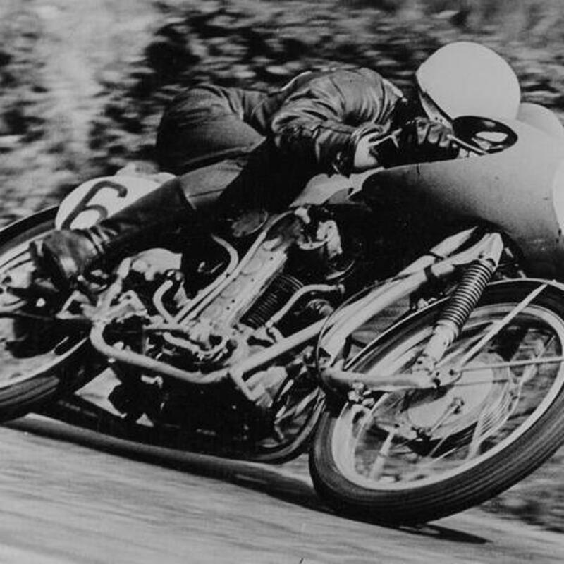 Aveva l’esafoglio bianco dipinto come portafortuna sul casco Cromwell rosso, e le sue imprese con la monocilindrica Ossa già entravano nella leggenda.