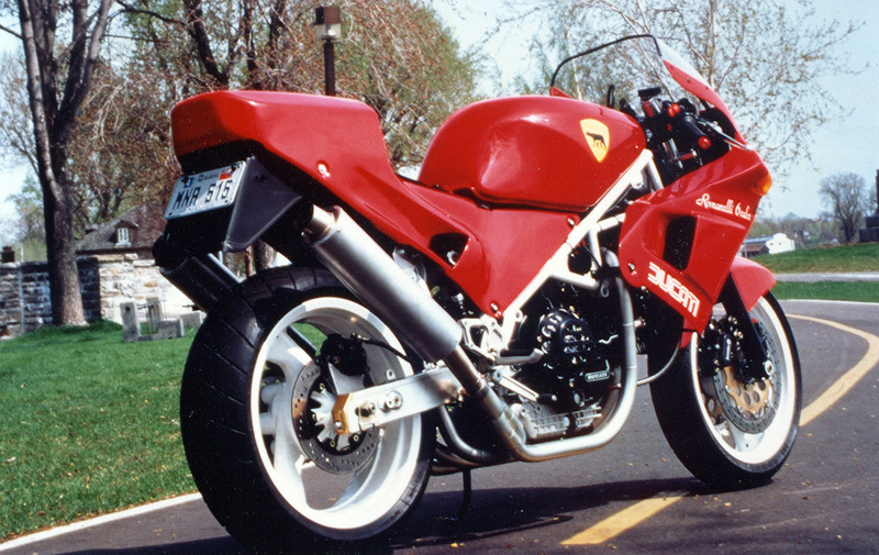 La storia dei motori con più di quattro valvole per cilindro non sarebbe completa se non parlasse anche delle teste ideate e realizzate da Francesco Romanelli, un vulcanico tecnico e imprenditore italoamericano che ho conosciuto di persona nella sede della famosa scuderia NCR nella seconda metà degli anni Novanta. Per la prima applicazione su di un motore motociclistico delle sue teste con sei valvole, azionate da due alberi a camme e richiamate da molle a elica, aveva infatti pensato a un bicilindrico Ducati. Le teste erano state fuse e lavorate a Bologna. In ciascuna di esse erano alloggiate due valvole di scarico, con i relativi condotti ricavati in due zone opposte. Per intenderci, con riferimento al cilindro verticale, un condotto andava in avanti e l’altro all’indietro.