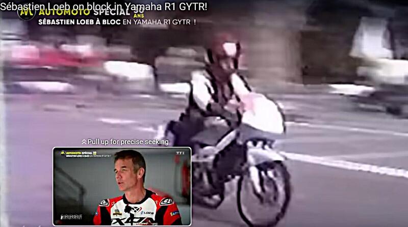 Salire su due ruote non era una novità per lui, e come ammette lo stesso Loeb, se avesse iniziato con una Moto da Gran Premio forse oggi il suo curriculum agonistico sarebbe non meno unico ma differente. E del resto in Patria Loeb ha un Maestro di “interscambio” di disciplina motoristica in Stephane Peterhansel, prima campione ciclista BMX, poi Mondiale di Enduro, infine recordman della Dakar, prima in Moto e poi in Auto. Insomma, tornando a noi, TF1+ e Yamaha si sono messi d’accordo, hanno coinvolto il circuito di Le Castellet, quello del Bol d’Or, e con il realizzatore della speciale tuta di pelle che un giorno magari sarà rarissima ad un’asta record, e hanno fatto salire Sébastien Loeb in sella a una Yamaha R1 GYTR, il top della gamma filo-racing della casa giapponese, una bestia progettata per il circuito, 215 CV e 172 kg di peso, combinazione esplosiva.