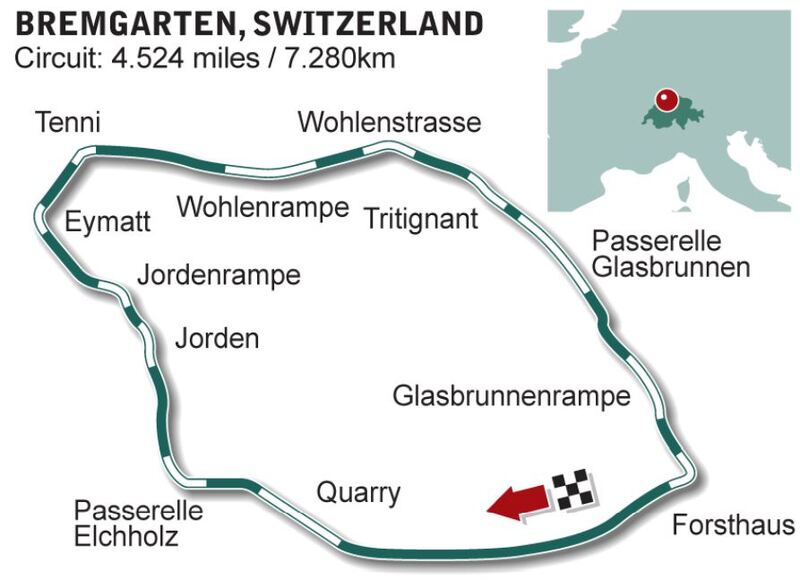 Nei primi anni Trenta anche in Svizzera si dotarono di un circuito, inizialmente pensato per le corse motociclistiche ma poi utilizzato e diventato molto famoso anche in ambito automobilistico. Questo circuito, realizzato alla periferia di Berna, si sviluppava in una ampia zona boschiva per una lunghezza di quasi otto chilometri e aveva una bellezza e un fascino particolari. La sua spettacolarità era dovuta al continuo alternarsi di salite e discese, curve strettissime, brevi rettilinei; era caratterizzato da un manto stradale irregolare, anche con qualche tratto di pavé, e gli spazi aperti e assolati improvvisamente si chiudevano sotto l’ombra degli alberi, che arrivavano sino al bordo pista senza protezioni.