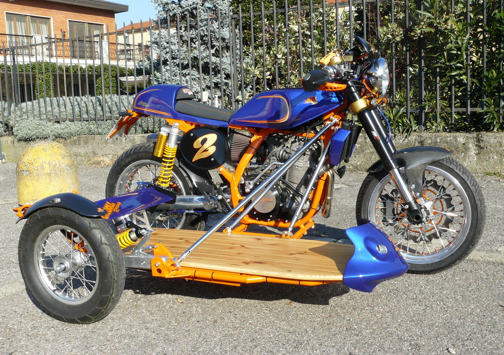 Occorreva partire da un robusto “mono” con una cilindrata adeguata (la scelta è caduta su di una KTM 525 del 2007) con l’obiettivo di realizzare una stradale sportiva dalla estetica accattivante, che fosse divertente da guidare e che potesse essere anche abbinata a un carrozzino, mantenendo la possibilità di impiegarla, volendo, anche come moto sciolta.