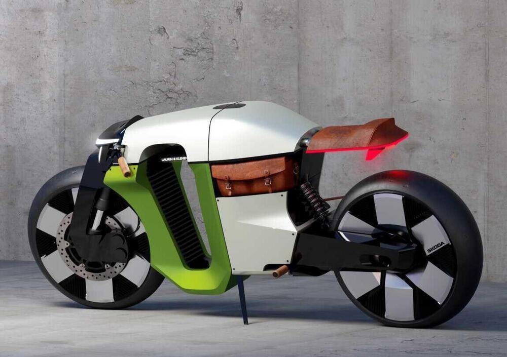 Il design della Slavia B Concept è arricchito da elementi come il telaio verde acido e il faro anteriore a LED, che le conferiscono un aspetto futuristico. La sella è realizzata in pelle di alta qualità, mentre il manubrio presenta dettagli in legno, combinando materiali naturali con tecnologie moderne.