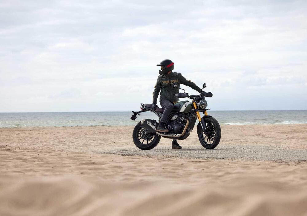 La new entry trae ispirazione per il suo design muscoloso dalle sorelle maggiori Scrambler 900 e 1200, il cui pedigree offroad affonda le sue radici fino agli anni ’50, l’epoca che diete vita alle prime Scrambler prodotte su larga scala. L'attenzione allo stile e alla cura costruttiva e’ tipicamente Triumph, cosi come ispirati ai modelli di cilindrata superiore sono i contenuti tecnologici e il livello di equipaggiamento standard.