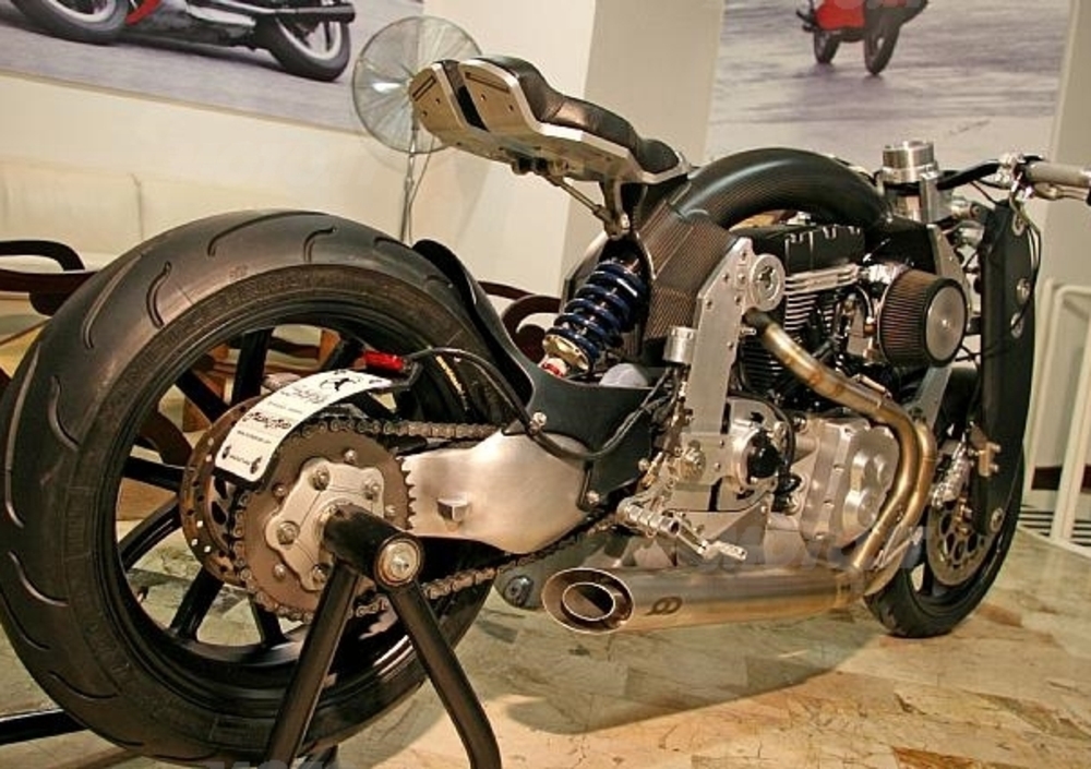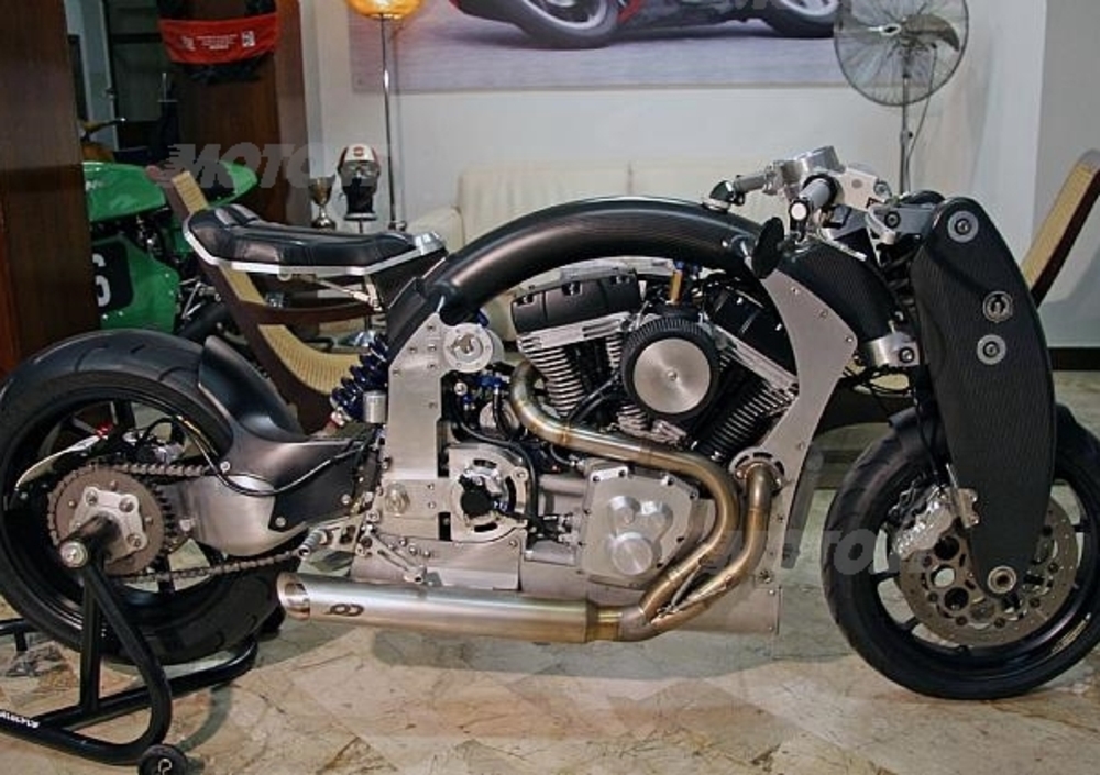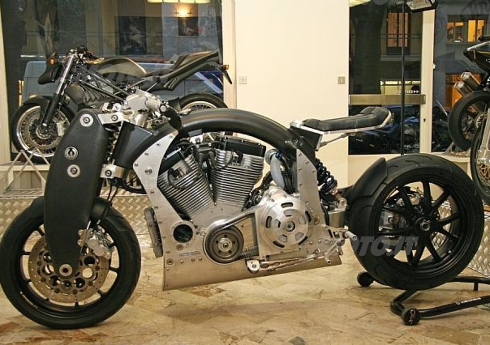 Pazza è la ciclistica e pazzo è il motore. La belva americana è spinta da un poderoso bicilindrico di 1.966,44 cc, a V con 2 valvole per cilindro e raffreddamento ad aria (è presente anche un piccolo radiatore per l'olio).