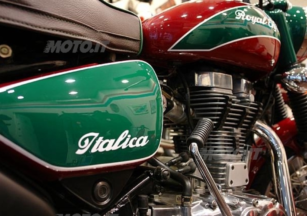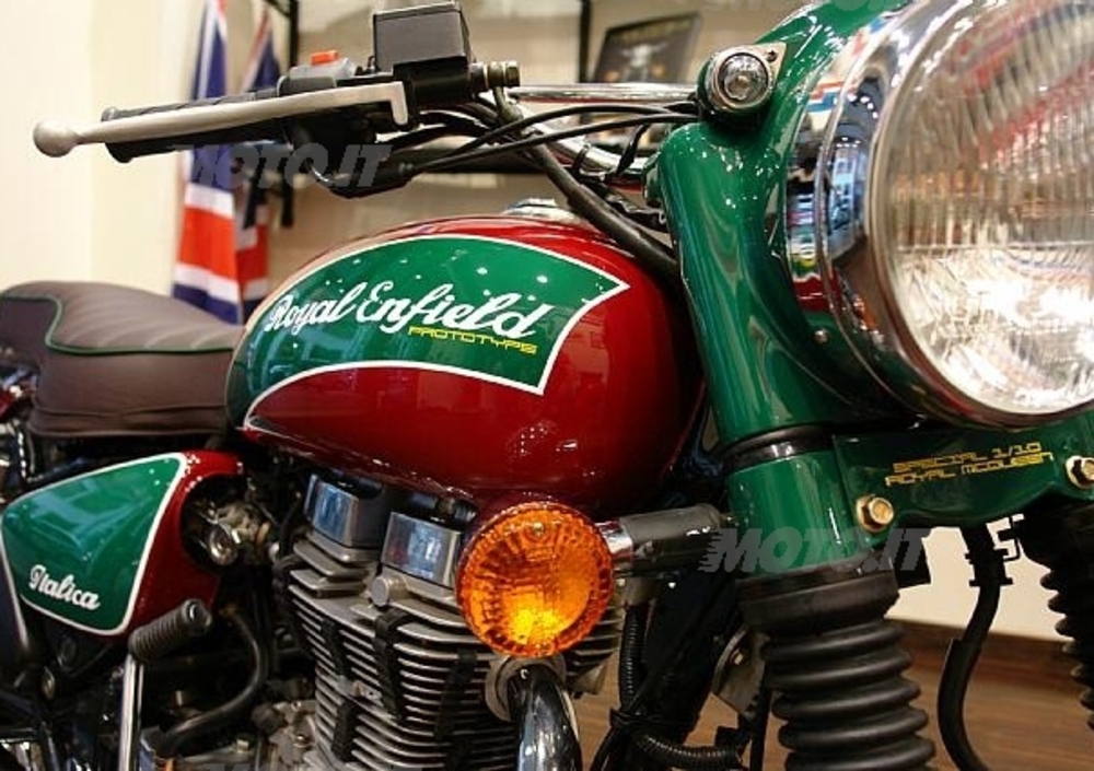 Royal Enfield Italica sfrutta la base meccanica e ciclistica del modello Electra 500 Efi Euro3, ma riceve una veste grafica decisamente personale.