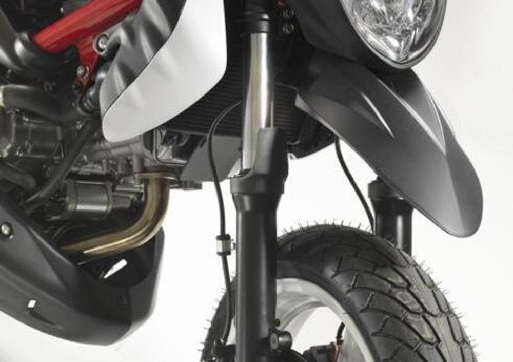 Il look richiama quasi quello delle supermotard, con il parafango anteriore alto, i paramani e la sella leggermente più alta. Proprio alla sella è stata dedicata una particolare cura. Il rivestimento è realizzato con pellami d’alta qualità resistenti all’acqua e l’imbottitura è stata inoltre aumentata di 2 cm.