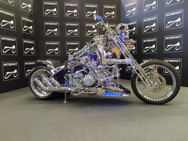 Troppe le moto che avremmo dovuto farvi vedere in un video se avessimo voluto dare una visione dettagliata dell'intera sezione Custom e Special, abbiamo preferito selezionarne una per tipologia e... cedere al fascino della - obiettivamente strepitosa - Terminator Sculputure Bike, una moto costruita pezzo dopo pezzo (a parte il motore, un Honda CBX 6 cilindri) come tributo alla saga postapocalittica dei Terminator lungo 10 anni di lavoro dal suo proprietario Bernd Meyer e semplicemente incredibile, specie se pensiamo che, a detta di Bernd, la Terminator Sculpture Bike è marciante: se vi chiamate John Connor, auguratevi di non incrociarla per strada...