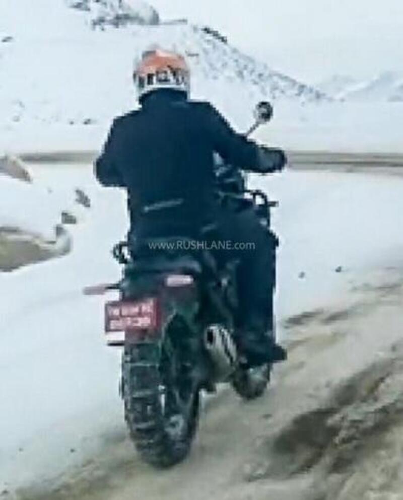 L'ultimo - in ordine di tempo - avvistamento è di qualche giorno fa e ritrae due collaudatori nei freddi e nevosi territori indiani tra Khardung la e la valle di Nubra in sella ai prototipi che salgono senza troppi indugi su per una strada innevata, con le catene sulle ruote posteriori. Potete vedere il video (e ascoltare il suono del monocilindrico) su Twitter, ricordando che da noi è vietato dal CdS procedere sulla neve.