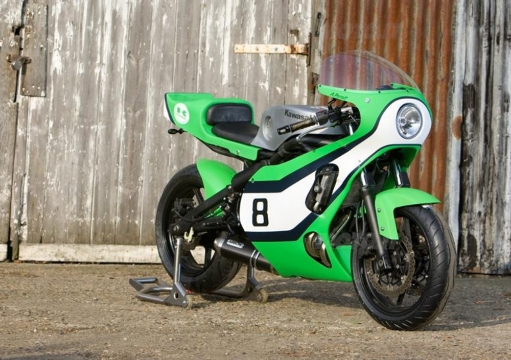 Dati forti vincoli di budget da parte di Aaron non è stato ovviamente possibile procurarsi gli elementi originali, orientando la scelta della carenatura su un’unità nata originariamente per una Bimota, su cui si è dovuto lavorare moltissimo per adattarla alla piccola Kawasaki. Tanto lavoro anche per il codone, che è stato allungato ed allargato, mentre per il serbatoio si è preferito partire direttamente da zero e realizzare un’unità in alluminio completo di tappi stile Endurance.