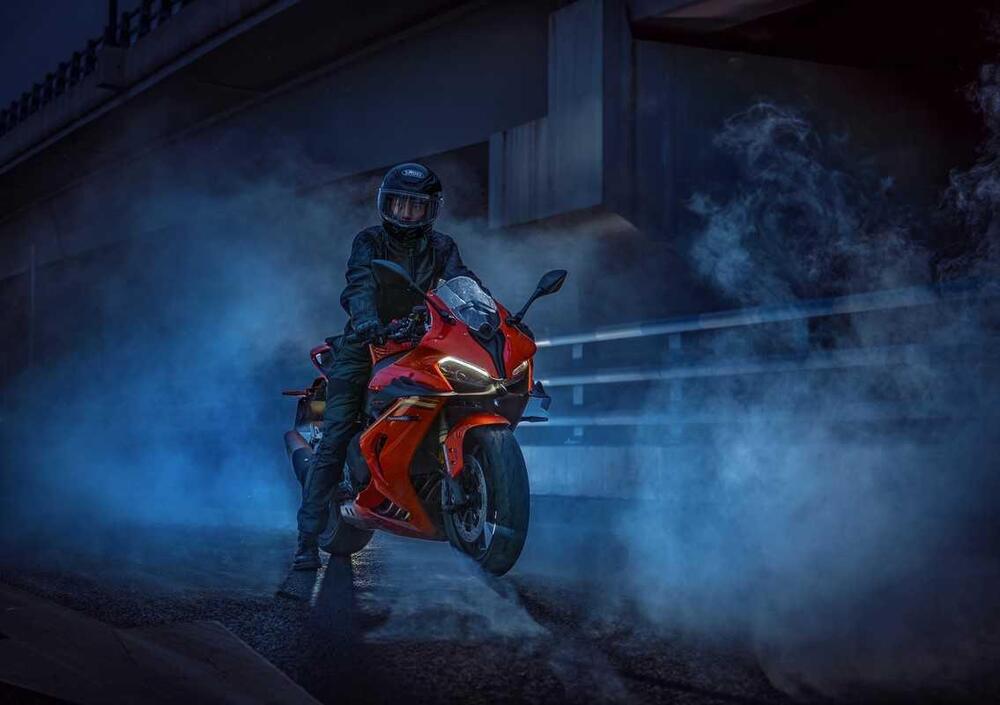 La ciclistica può contare su un doppia trave in alluminio che integra il motore come parte del telaio, migliorando maneggevolezza e stabilità alle alte velocità.