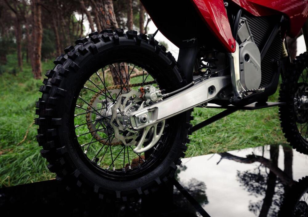 Chiaramente la ruota posteriore è da 18 pollici ed in fase di acquisto si può scegliere fino a cinque combinazioni di gomme e mousse, proprio per ritirare la moto ed essere 100% pronti per le avventure nei boschi.