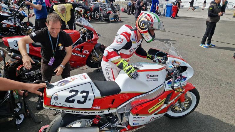 Il Team, infatti, con un lavoro senza soste è riuscito a sistemare il propulsore della moto da gara. Un apporto decisivo alla riuscita è stato quello di Pete Beale, che in tempi strettissimi ha messo a punto le parti meccaniche danneggiate durante le qualifiche. Nella giornata di ieri il team ha effettuato un test in pista per verificare la funzionalità del motore e della moto in assetto gara e nonostante il meteo che ha costretto a posticipare il warm il morale del team italiano è altissimo e Bonny in sella alla Bimota YB4 E.I. R è pronto per il via per i 4 giri della Classic Superbike.