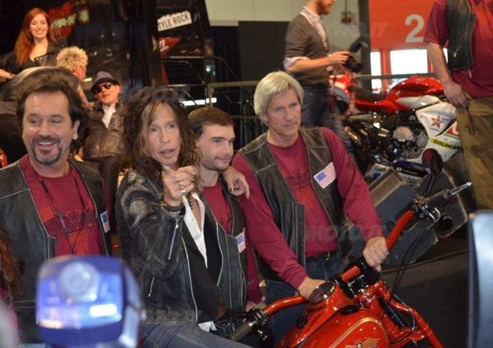Nel giorno di apertura della manifestazione 2013, fa gli onori di casa presso lo stand Virgin Radio il cantante Steven Tyler, leader degli Aerosmith, autentica leggenda del Rock. In sella ad una Dirico Speedster, casa di cui è testimonial a scopo benefico. Il rocker ha presenziato all’inaugurazione della mostra, rispondendo alle domande dai fan e concedendo autografi.