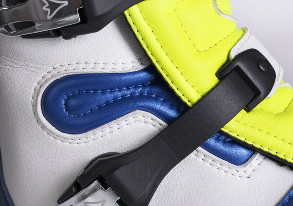 Il comparto protezioni prevede parastinco, tallone e malleoli, e paracalore nel lato interno.