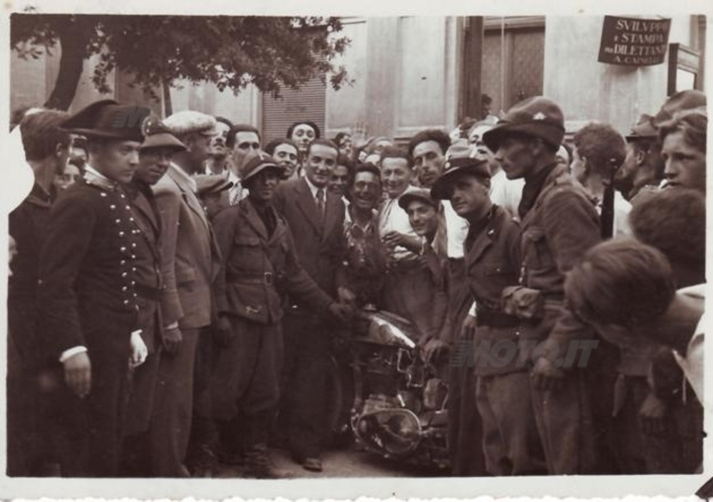 Luciano prende a sfogliare un album fotografico che è la storia della sua famiglia. Gino Sembenini senior sorride dalla tessera della Reale Federazione Motociclistica Italiana e solleva polvere l’undici