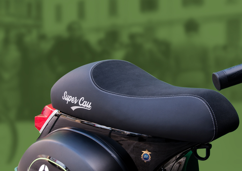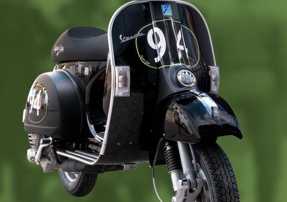 La Vespa SuperCau sarà nero lucido, con cofani e copristerzo nero opaco; quest’ultimo, assieme al claxon esterno “anni 60”, la sella “Sport” con logo “SuperCau” e riproduzione della firma e le tabelle portanumero saranno realizzate in esclusiva, con qualità costruttiva e materiali assolutamente all’altezza dell’originale.