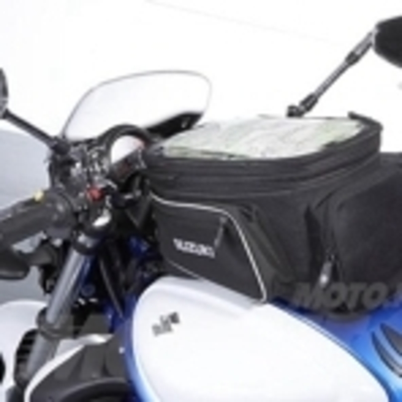 *la Bandit 1250 in versione Traveller , anch'esso con ABS comprende: bauletto da 47 litri, 2 borse laterali rigide da 35 litri (con piastre e coperchi), cupolino con aletta variabile e puntale.
