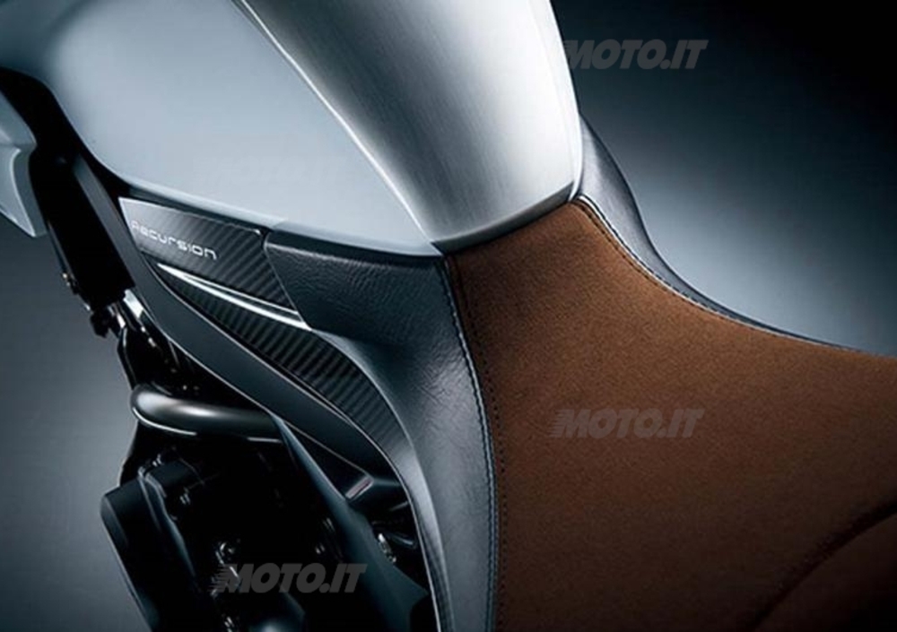 Suzuki è la prima a riproporre - sia pure allo stato di concept, quindi con notevole anticipo rispetto alla potenziale uscita in produzione - una moto sovralimentata con questa Recursion, che non a caso già nel nome cita il teorema dei ricorsi storici a cui il mercato motociclistico non fa eccezione. Fra l'inizio e la metà degli anni 80 infatti tutte le case giapponesi (e la nostra Morini, sia pure senza un seguito produttivo) avevano introdotto nella propria gamma modelli sovralimentati.