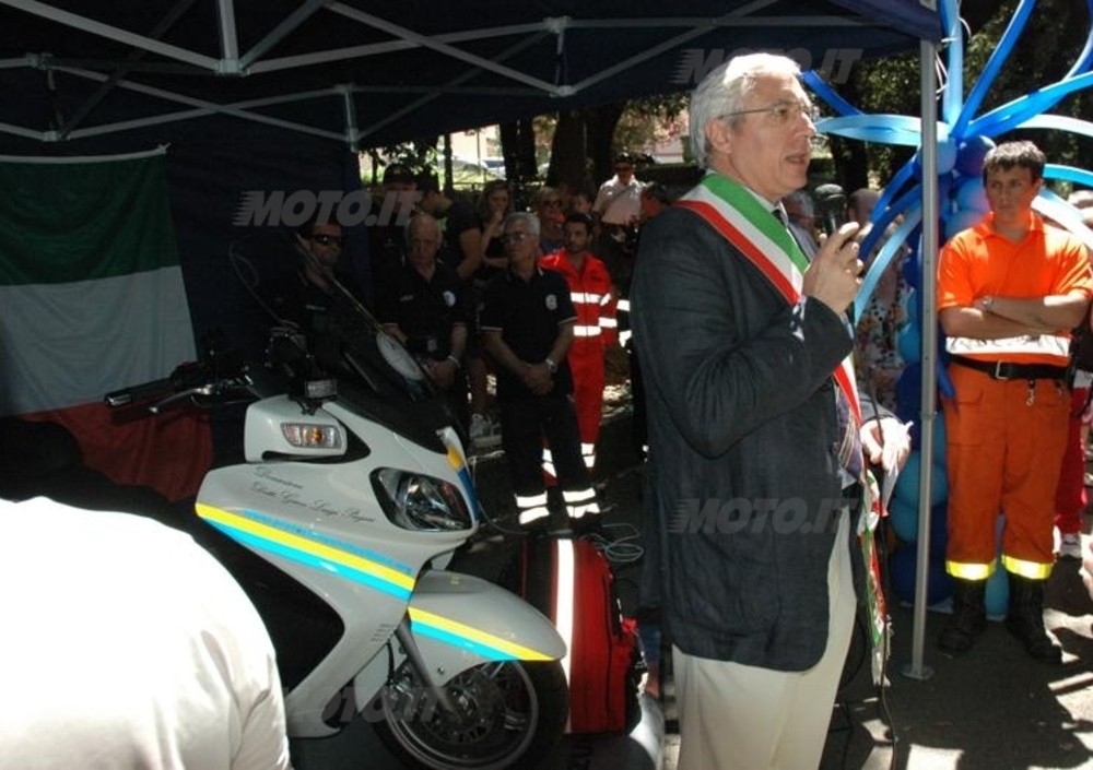 Il motoveicolo è stato equipaggiato con un allestimento molto ampio e specifico per il suo nuovo utilizzo: dai sistemi di allarme visivo, sonoro e amplivoce ad un sistema di localizzazione GPS, da 2 caschi integrali apribili intercomunicanti ad uno zaino medico di primo soccorso tipo “ spencer”, da un telo portaferiti ad un frigo da trasporto per medicinali e sacche sangue fino ad un defribillatore portatile semiautomatico.