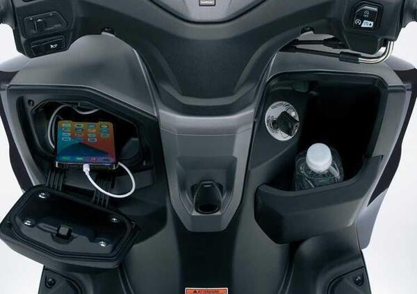 Il motore si spegne quando ci si ferma e si riavvia automaticamente quando si accelera. Perché questa operazione non diventi un fastidio piuttosto che un vantaggio, Suzuki ha adottato un motorino di avviamento molto silenzioso. Lo start-stop entra automaticamente in funzione quando il motore raggiunge la temperatura ideale di esercizio e ovviamente se il livello della batteria è sufficiente. Il risultato sono consumi particolarmente parsimoniosi: 1,9 litri ogni 100 chilometri. Anche le emissioni di CO2 sono contenute: 44 g/km. Il motore è un monocilindrico quattro tempi raffreddato ad aria che sviluppa 8,6 CV (6,3 kW) a 6.500.