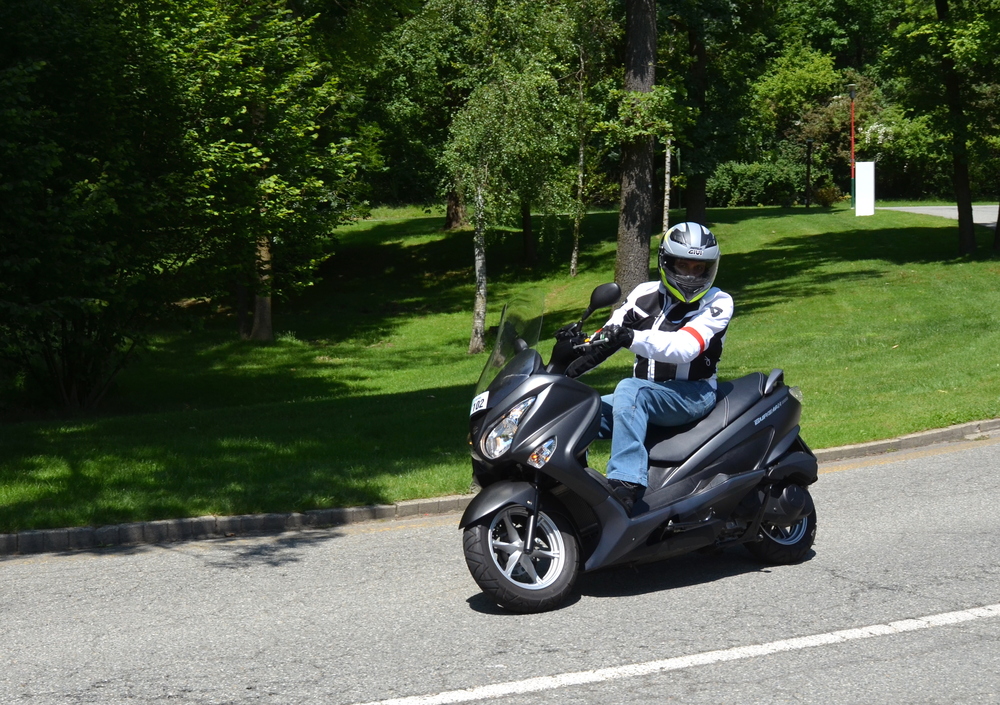 Viene il turno del piccolo del gruppo, l'Address 110, per il quale è stato scelto un percorso prettamente cittadino di 41 km, da percorrere in 45 minuti. Il monocilindrico dovrà dimostrarsi parco, e i 76,6 km/l di media lo confermano, considerando la quantità di semafori, naturalmente rossi, trovati lungo il percorso, e un'incertezza del navigatore che ci ha costretti ad un allungamento di percorso, con relativa rincorsa finale a gas spalancato per non sforare il tempo imposto!
