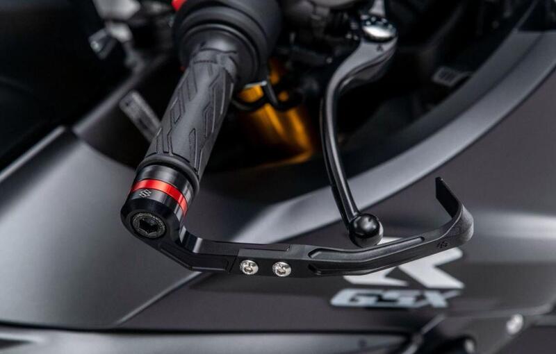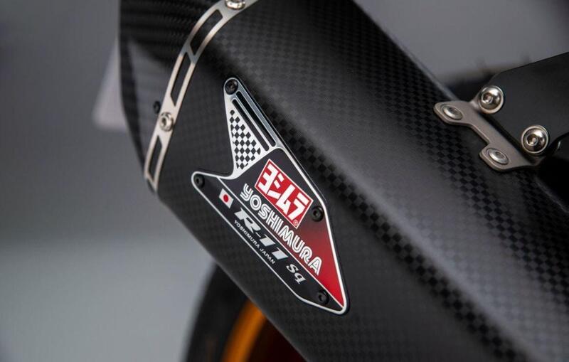 A cominciare appunto dal silenziatore R11 Yoshimura, di forma poligonale, con rivestimento, fondello e paracalore in fibra di carbonio. Ci sono poi il codino coprisella in tinta, il cupolino fumé, le protezioni per le leve di freno e frizione, il rivestimento carbon look del tappo del serbatoio e la protezione antigraffio sul serbatoio.