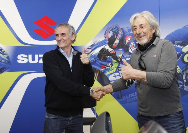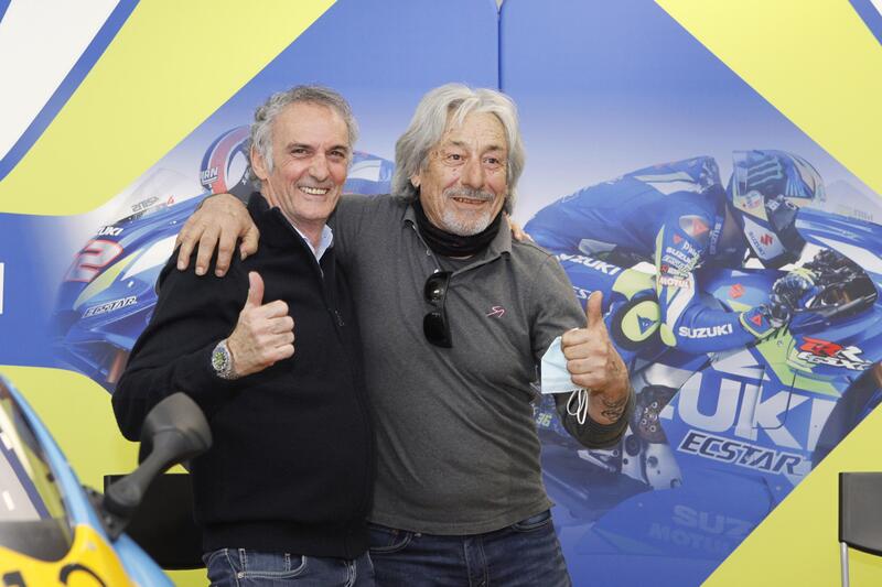 Marco Lucchinelli e Franco Uncini sono stati protagonisti di una giornata particolare presso la sede di Suzuki Italia a Torino. Due esemplari della serie Suzuki GSX-R1000R Legend Edition con livree che rievocano quelle delle moto protagoniste nel biennio 81' e 82' dei loro successi iridati con il Team Gallina nella classe regina. Le due Suzuki Gsx-R1000R Legend Edition fanno parte della speciale serie in edizione limitata realizzata per rendere omaggio al titolo mondiale vinto dallo spagnolo Joan Mir nella stagione 2020, rievocando i sei precedenti trionfi Suzuki riproponendo le grafiche e le livree vincenti.