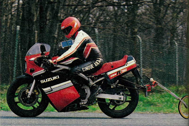Netta la differenza dalla Yamaha FZ nella ripresa dai 60 km/h in sesta marcia, dovuta al tipo di erogazione nettamente più favorevole della «venti-valvole» di Iwata, che in questo campo ha fatto meglio addirittura dell’ammiraglia FJ 1100. Gli spazi di frenata sono risultati invece inferiori alle aspettative, anche se da ritenere buoni in assoluto: le prestazioni in tal senso infatti sono risultate inferiori (anche se di poco) a quelle ottenute con la Honda CBX 750 e con l'altra sette e mezzo Yamaha, la XJ. Durante i nostri rilevamenti infatti, grazie alla potenza e alla modulabilità del doppio disco anteriore, non siamo riusciti ad evitare, complice la leggerezza della moto, il netto sollevamento da terra del retrotreno. Dobbiamo comunque tranquillizzare i futuri utenti della nuova Suzuki: infatti tale fenomeno, nell'uso generale, può accadere solamente se il pilota vuole esibirsi in qualche piccolo show per gli amici. Osservando i Gran Premi di velocità, del resto, solo una volta ci è capitato di vedere il funambolico Randy Mamola, in lotta con Roche, compiere una simile evoluzione in corsa.