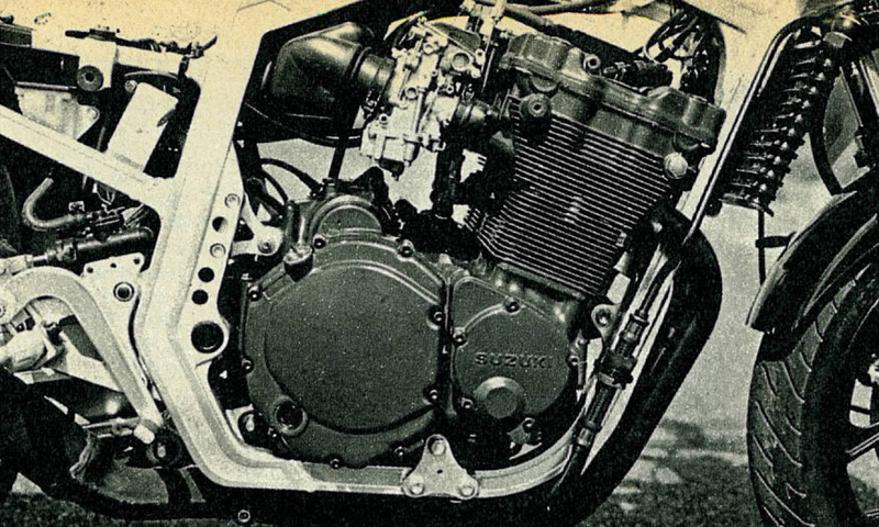 I 4 carburatori con valvole a ghigliottina respirano attraverso un grosso filtro dell'aria da 8 litri, alloggiato in zona calma e fresca in un incavo ricavato in alto, sotto la parte posteriore del serbatoio. Il quattro cilindri in linea della nuova generazione Suzuki, inoltre, è più compatto del precedente GSX, anche perché l'alternatore è stato spostato dietro ai cilindri; ed è anche più leggero di ben 9 chilogrammi (e di 22 rispetto al primo GS a due valvole per cilindro).
