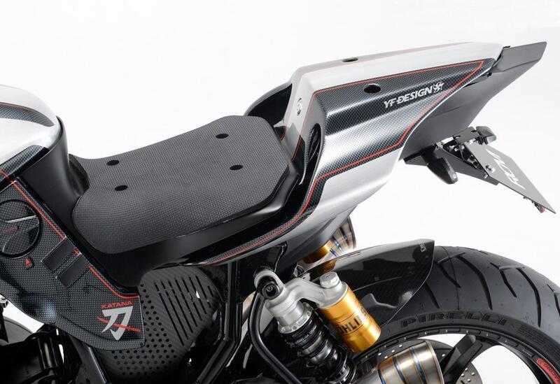 Il tocco estetico finale è stata la sostituzione della lunga sella bicolore con un coda monoposto molto più slanciata e ridotta nelle dimensioni ricorrendo alla Yamaha R1.