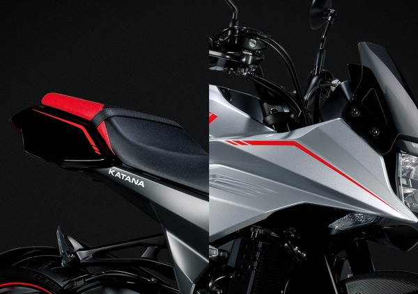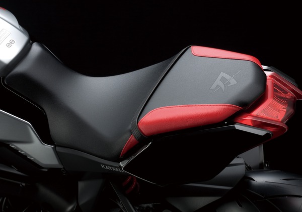 Che hanno un valore di 1.500 euro e che sulla Katana Jindachi sono: scarico in titanio appositamente realizzato da Akrapovic (fra le altre cose consente un sensibile risparmio di peso), cupolino maggiorato, sella bicolore nera e rossa con logo Katana stampato, adesivi per la carrozzeria e per le ruote, adesivi protettivi carbon look e protezione per il serbatoio carbon look. Il valore dell’intero kit supera quindi i 1.500 euro.