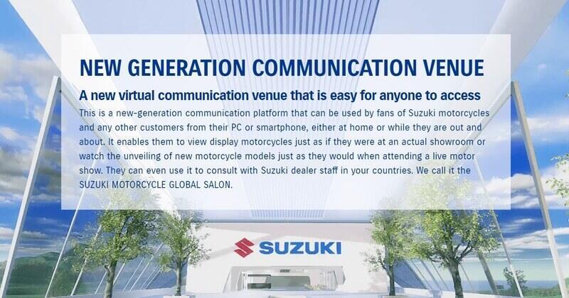 Suzuki la definisce una piattaforma di comunicazione di nuova generazione che può essere consultata dal PC come dallo smartphone (scaricando l'app gratuita) permettendo di visualizzare i modelli, di assistere alla loro presentazione come si stesse visitando un salone dal vivo e di interagire con l'importatore Suzuki del proprio paese.
